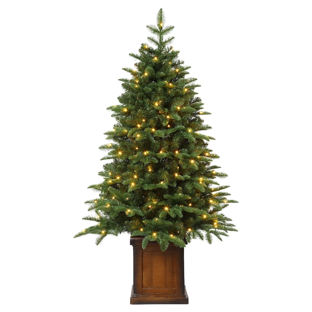 From the mountains of the Pacific Northwest comes one of the most recognizable Christmas trees – the Noble Fir. Found growing at the highest elevations, the Noble Fir is known for its layered branches in a soft green hue with a slight hint of blue. The in and out layering of the branches make it ornament ready. This version with its slimmer profile and warm white lights, make it the perfect tree for smaller spaces.