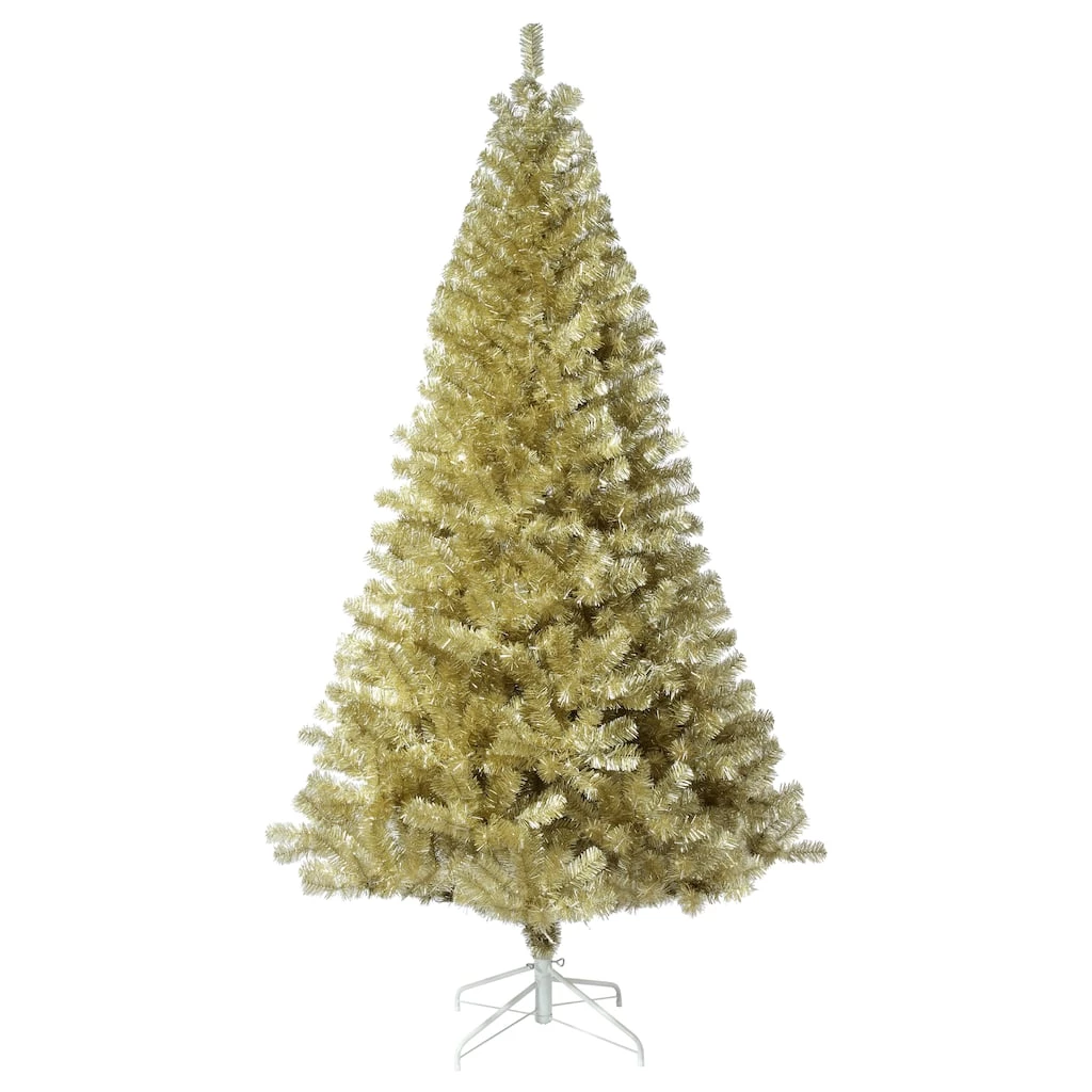 Create a glamorous holiday display with this artificial Champagne Gold tree. Made of soft, glistening tinsel that reflects the warm white lights, it will create a beautiful centerpiece for your holiday festivities.