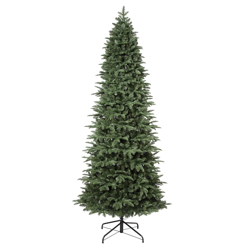 From the mountains of the Pacific Northwest comes one of the most recognizable Christmas trees โ the Noble Fir. Found growing at the highest elevations, the Noble Fir is known for its layered branches in a soft green hue with a slight hint of blue. The in and out layering of the branches make it ornament ready. This 9ft. version with its slimmer profile and warm white lights, make it the perfect tree for smaller living spaces with high ceilings or a secondary holiday tree.
