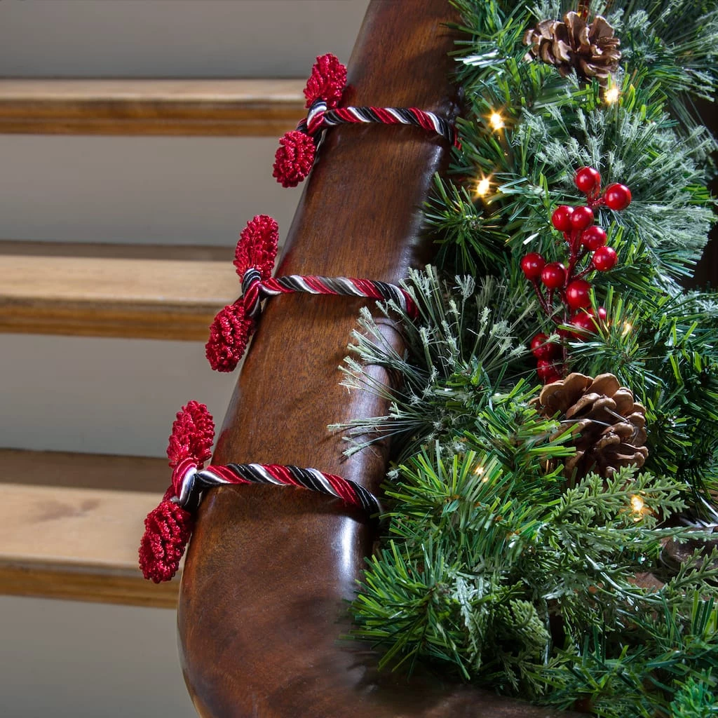 These decorative twist ties secure garland, lights, wreaths, stockings and other decorations with ease, without interrupting your Christmas dΓ©cor. These decorative rope garland ties act as a twist tie, as there’s a hidden wire inside. Simply wrap around your garland and twist it to secure!