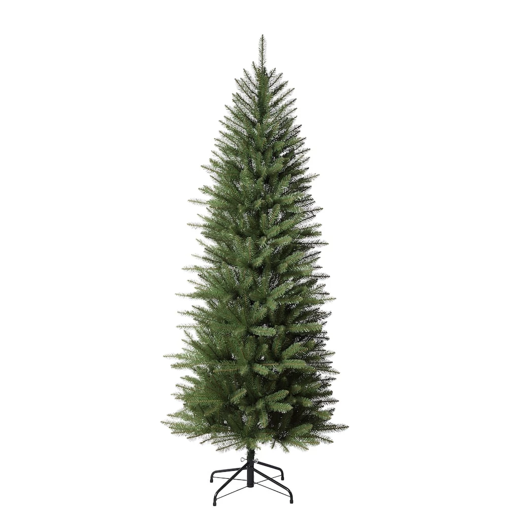 Christmas defined – the thick and full Dumont is the ideal tree for your celebration. This pencil slim 6.5-foot tree with 764 tips is ready for your personal touch with lights and your treasured ornaments. The faux needles are tapered at the tips, just like a real tree but no dropped needles here. It only takes minutes to shape the hinged branches into the perfect tree, and its slim size makes it perfect for small spaces or even flanking a fireplace.