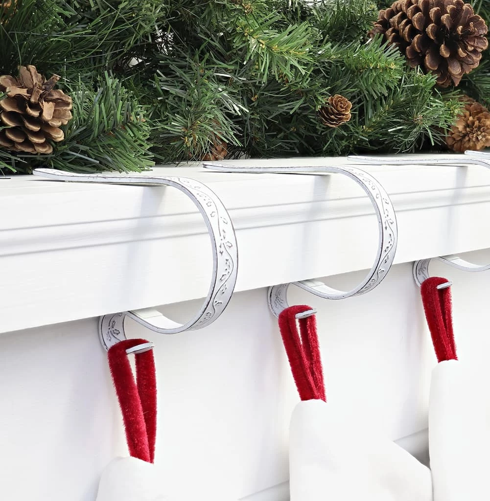 The Original MantleClip stocking holder features a sophisticated low-profile design that will not interfere with other Christmas decor displayed on the mantel, such as Christmas villages or garlands. What’s more, these stocking holders are a good choice for households with pets and small children. Ordinary stocking holders often consist of very heavy weights that can fall on curious children or pets. These amazing MantleClip stocking holders are the answer! Weighing only a few ounces each, these durable clips hold stockings in place safely and securely. With their sturdy metal construction, they support even the fullest stockings (up to 10 lb.). Clear soft gripper pads hold the clips in place while protecting the mantel surface from scratches. Use these versatile MantleClips to display Christmas stockings, holiday ornaments, and colorful garlands.