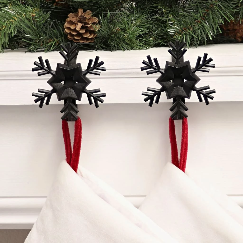 Add a festive look to your mantel with our removable decorative icons made from plastic. Each pack comes with an equal number of MantleClip Stocking Holders andΒ plasticΒ icons in the same finish. The icons clip easily onto the front of the Original MantleClip, adding a festive look to our best-selling product. Hang your stockings safely and securely with The Original MantleClip. It’s lightweight yet can hold a full stocking without falling off the mantle, making it a more “kid-friendly” product, compared to heavy, counter-balance stocking holders. The MantleClip stocking holder is specifically designed to not only hold stockings but also lights, garland, and other decorations.