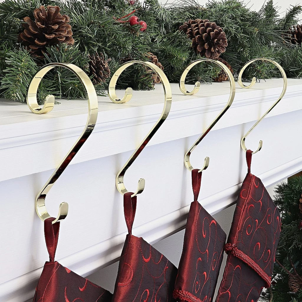 A very ornate yet also functional stocking holder, Stocking Scrolls have the capability of holding a full stocking on the fireplace mantel. They have a gripper pad to prevent scratches and help hold it in place. This product’s ability to swivel will allow it to fit almost any sized mantel. Lightweight design is safer for homes with children, versus heavy, counter-balance stocking holders. Won’t interfere with other holiday dΓ©cor on the top of mantel.
