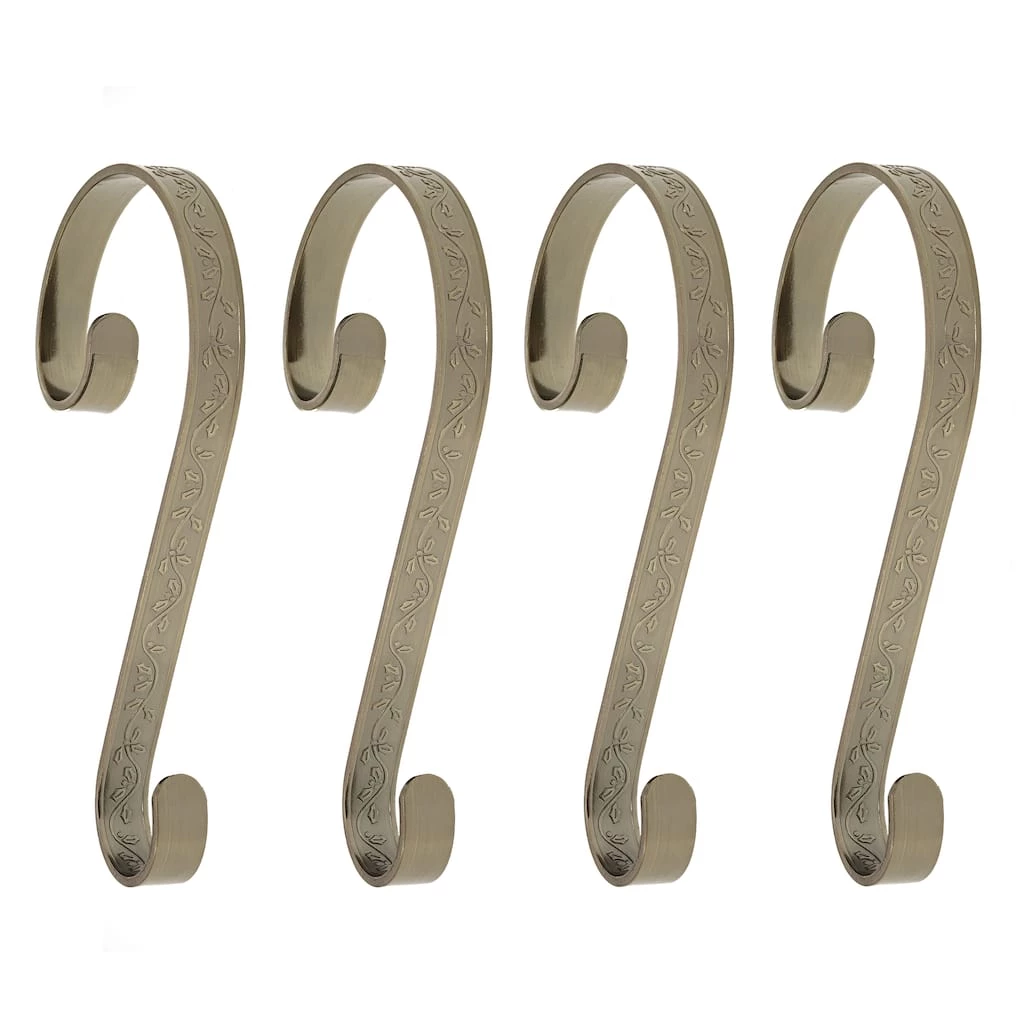 A very ornate yet also functional stocking holder, Stocking Scrolls have the capability of holding a full stocking on the fireplace mantel. They have a gripper pad to prevent scratches and help hold it in place. This product’s ability to swivel will allow it to fit almost any sized mantel. Lightweight design is safer for homes with children, versus heavy, counter-balance stocking holders. Won’t interfere with other holiday dΓ©cor on the top of mantel.