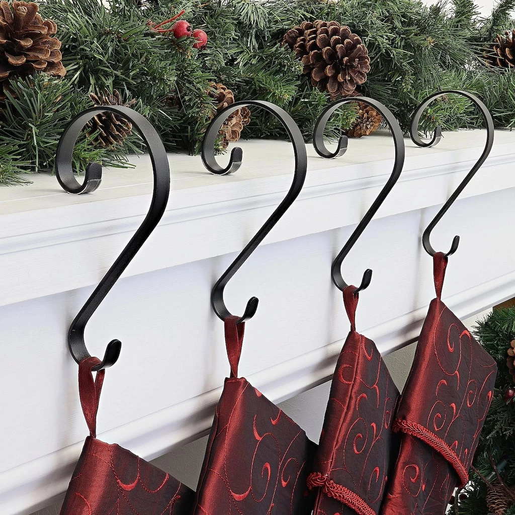 A very ornate yet also functional stocking holder, Stocking Scrolls have the capability of holding a full stocking on the fireplace mantel. They have a gripper pad to prevent scratches and help hold it in place. This product’s ability to swivel will allow it to fit almost any sized mantel. Lightweight design is safer for homes with children, versus heavy, counter-balance stocking holders. Won’t interfere with other holiday dΓ©cor on the top of mantel.