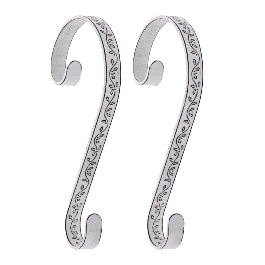 A very ornate yet functional stocking holder, Stocking Scrolls can hold a full stocking on a wide variety of fireplace mantel styles. They have a gripper pad to prevent scratches and help hold it in place. This product’s ability to swivel will allow it to fit almost any sized mantel. Lightweight design is safer for homes with children, versus heavy, counter-balance stocking holders. Won’t interfere with other holiday dΓ©cor on the top of mantel.
