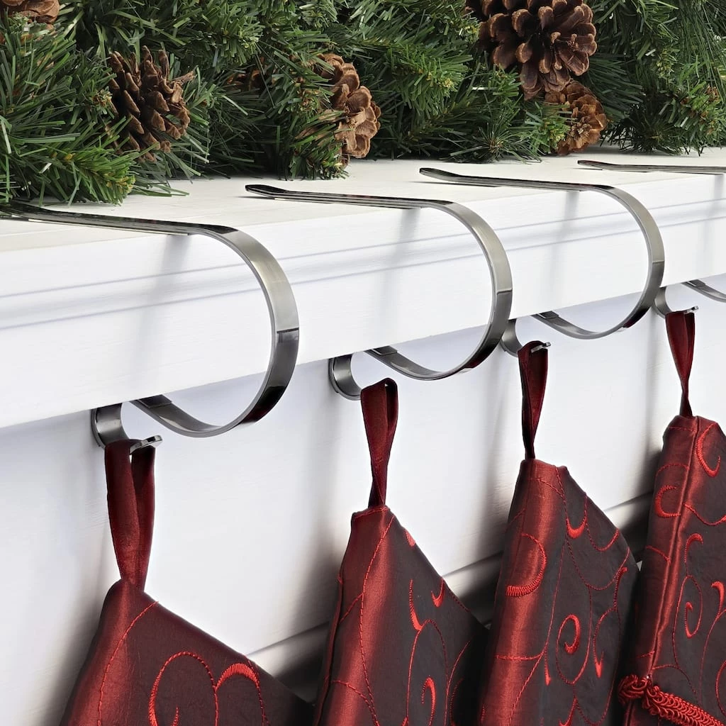 The Original MantleClip stocking holder features a sophisticated low-profile design that will not interfere with other Christmas dΓ©cor displayed on the mantel, such as Christmas villages or garlands. What’s more, these stocking holders are a good choice for households with pets and small children. Ordinary stocking holders often consist of very heavy weights that can fall on curious children or pets. These amazing MantleClip stocking holders are the answer! Weighing only a few ounces each, these durable clips hold stockings in place safely and securely. With their sturdy metal construction, they support even the fullest stockings (up to 10 lb.). Clear soft gripper pads hold the mantel clips in place while protecting the mantel surface from scratches. Use these versatile mantel clips to display Christmas stockings, holiday ornaments, and colorful garlands.