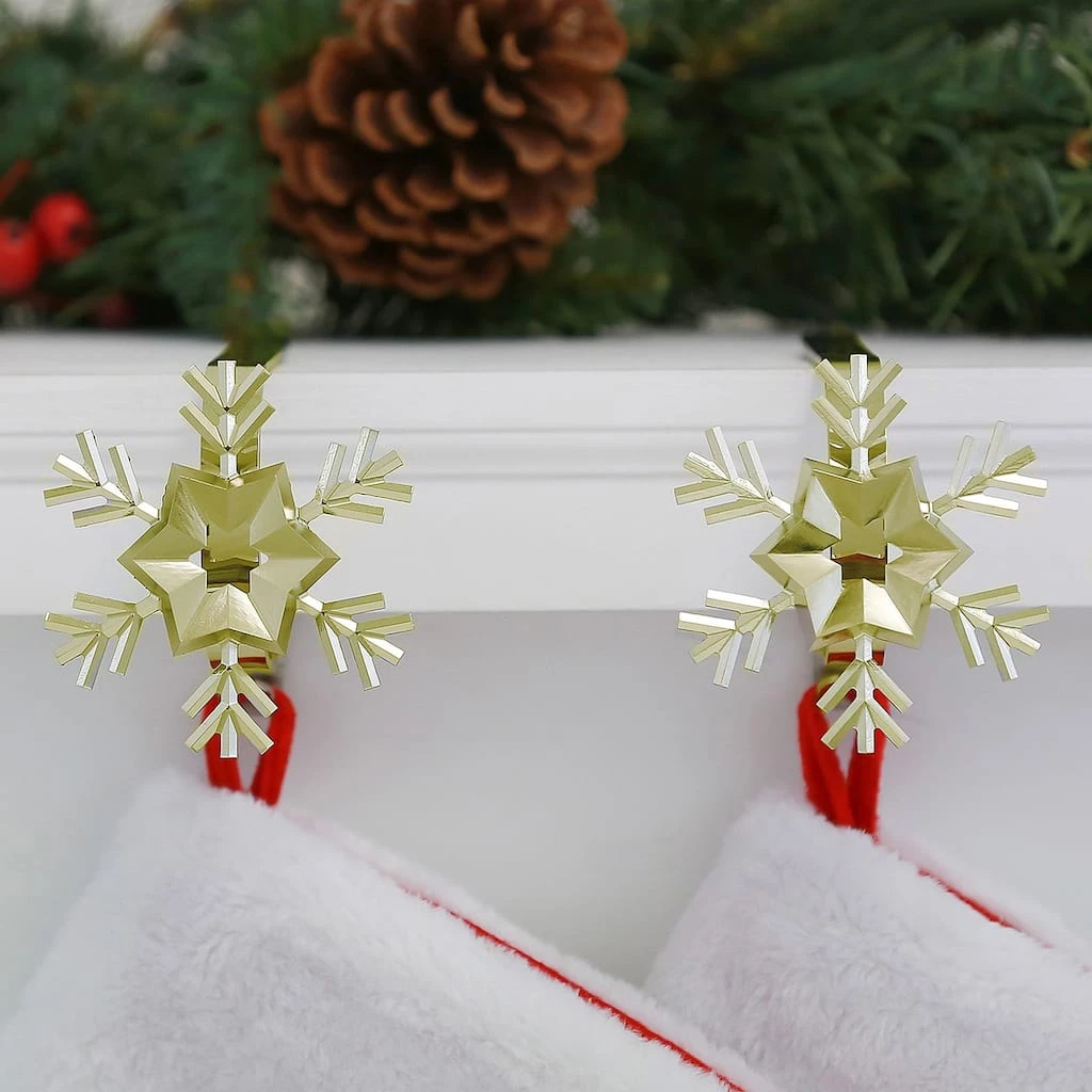 Add a festive look to your mantel with our removable decorative icons made from plastic. Each pack comes with an equal number of MantleClip Stocking Holders andΒ plasticΒ icons in the same finish. The icons clip easily onto the front of the Original MantleClip, adding a festive look to our best-selling product. It’s lightweight yet can hold a full stocking without falling off the mantle, making it a more “kid-friendly” product, compared to heavy, counter-balance stocking holders. The MantleClip stocking holder is specifically designed to hold not only stockings but also lights, garland, and other decorations.