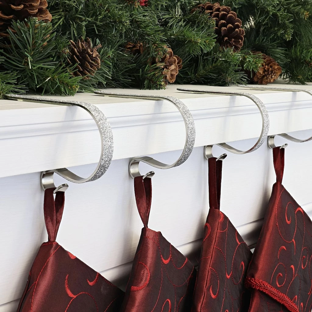 The Original MantleClip stocking holder features a sophisticated low-profile design that will not interfere with other Christmas dΓ©cor displayed on the mantel, such as Christmas villages or garlands. What’s more, these stocking holders are a good choice for households with pets and small children. Ordinary stocking holders often consist of very heavy weights that can fall on curious children or pets. These amazing MantleClip stocking holders are the answer! Weighing only a few ounces each, these durable clips hold stockings in place safely and securely. With their sturdy metal construction, they support even the fullest stockings (up to 10 lb.). Clear soft gripper pads hold the mantel clips in place while protecting the mantel surface from scratches. Use these versatile mantel clips to display Christmas stockings, holiday ornaments, and colorful garlands.