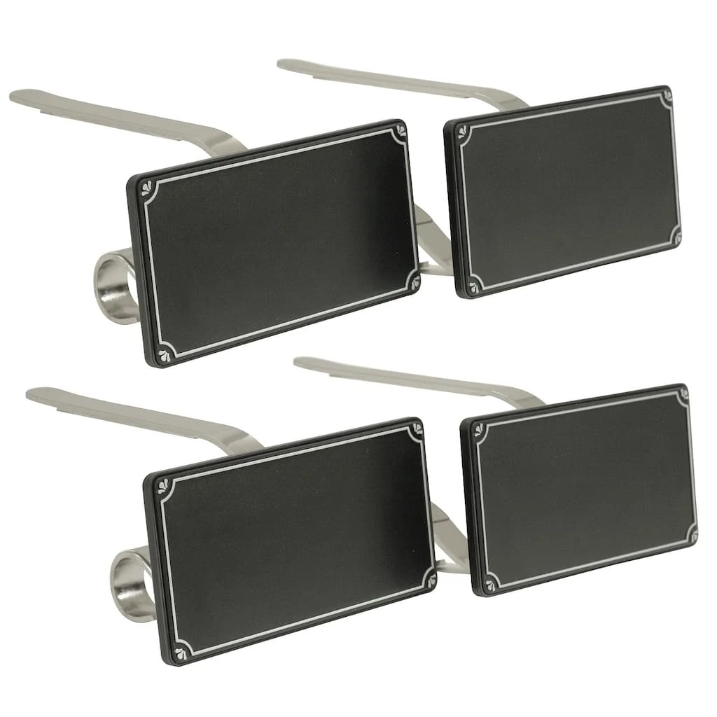 The Original MantleClipยฎ stocking holder with chalkboards are a fun way to personalize your stocking holder! Simply clip the chalkboard ontoย the MantleClip and you’re ready to personalize. The MantleClip features a sophisticated low-profile design that will not interfere with other Christmas decor displayed on the mantel. What’s more, these stocking holders are a good choice for households with pets and small children. Ordinary stocking holders often consist of very heavy weights that can fall on curious children or pets. Weighing only a few ounces each, these durable clips hold stockings in place safely and securely. With their sturdy metal construction, they support even the fullest stockings. Clear soft gripper pads hold the mantel clips in place while protecting the mantel surface from scratches.ย Use these versatile mantel clips to display Christmas stockings, holiday ornaments, and colorful garlands.